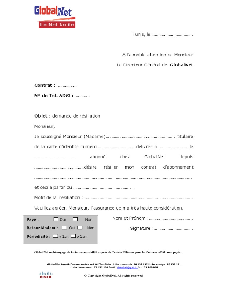 Demande De Resiliation 2 1 Pdf Telephonie Equipement De Telecommunications
